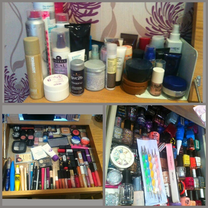 I've been meaning to sort through all my make-up, beauty products and nail varnishes for a very long time and just haven't got round to doing it. I just literally have far too much stuff for what I have space for and so much of it I don't even use! So this weekend I bit the bullet and set myself the task of at least getting rid of enough stuff so that my cupboards weren't brimming over anymore.... I didn't do particularly well!